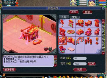 房屋管家处有一些特殊风格的家具出售,给玩家在某些特殊的时刻使用。如洞房花烛系列家具,专为即将步入婚姻殿堂的玩家设计,营造充满爱意的新房。