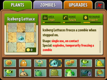 攻击距离: 接触生效,冻结僵尸12秒,熄灭炸药和火把