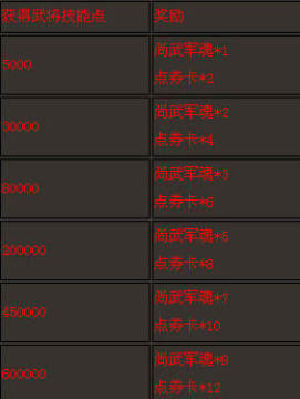 活动期间内,使用技能点卡或技能残页来获得指定数量的武将技能点,即可获得对应的活动奖励。