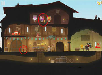 ①注意酒保,等他转身之后拿起桌上的酒壶,然后在下去地下室。