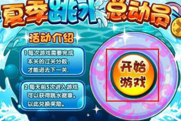 玩家们参与夏季跳水总动员活动,达到一定的分数,就可以通过,通过一关就可以获得一个跳水徽章。(每天前五次游戏才可以获得跳水徽章)