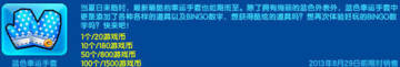 获得随机道具与BINGO数字 使用时消耗1个蓝色幸运手套 2013.9.12前可以使用的道具。