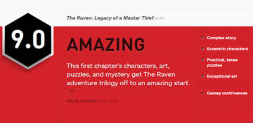 冒险解谜《乌鸦 神偷的遗产》IGN详细评测 获9分高评