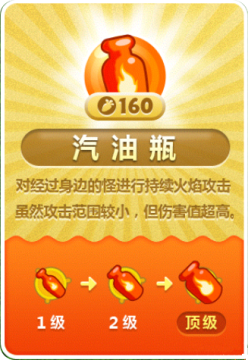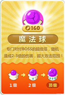全局伤害,可穿透。适合放在怪物行进路线的延长线上,一打一条线!并且他还有个好的作用,无意中就把场景中的道具全部干掉了,大爱啊!售价160刀