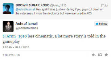 《刺客信条4黑旗》游戏总监推特原文: