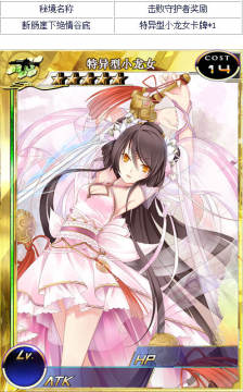 1.每个角色通过此活动最多获得特异型小龙女卡牌*1;