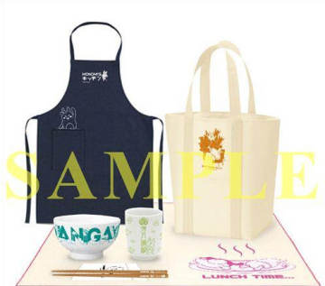 首先是包括围裙、环保袋、碗、茶杯、筷子和桌布等六件商品在内的套装,这套周边应该说是别具一格还是应该说设计新颖呢?六件商品上都会有《弹丸论破》的标志和游戏中出现的一些图标,售价为5500日元。
