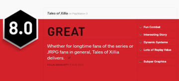 NBGI公司开发的PS3独占大作《无尽传说(Tales of Xillia)》最近登陆欧美市场,对于这款日式RPG而言,老美玩家还是给予了高度评价,就拿国外著名评测媒体IGN而言,其就给予该作8.0的高评价,下面就来一起看看吧。