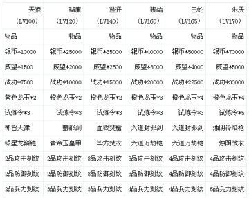 猰貐:古代传说中的吃人怪兽,传说是天神,是烛龙的儿子.无论是每次掉落3个橙玉+3个试炼令还是掉落的六道装备以及4品兵纹都是该阶段的好货,因此推荐大家在有富余的令时每天4次也就是10个令花费在该BOSS上是物有所值的.