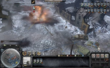 后方支援一辆ISU-152重型坦克,将它开到断桥右侧空地,和其它的坦克一起推开薄弱的城墙冲进去。与此同时,后方的迫击炮架好,朝城里据点的反坦克炮和德军坦克轰炸,然后占领城里的一座据点。