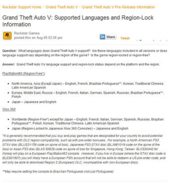 问:侠盗猎车手5的支持哪些语言?这些语言包括在所有版本或根据游戏版本区分?是否锁区?