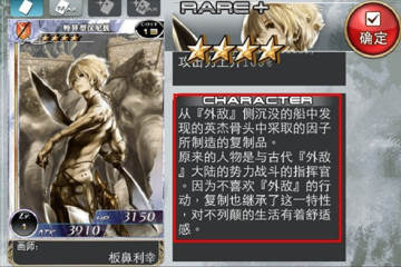 文字描述为:从“外敌”侧沉没的船中发现的英杰骨头中采取的因子所制造的复制品。原来的人物是与古代“外敌”大陆的势力战斗的指挥官。因为不喜欢“外敌”的行动,复制也继承了这一特性,对不列颠的生活有着舒适感。这段描述对应的卡牌名字为:特异型汉尼拔。