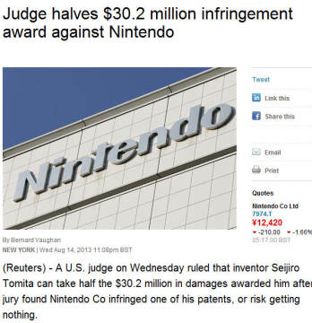 经过几个月的证据收集和量刑,法官认为在审判里出示的证据表明,任天堂的3DS主机并不盈利,而且为它所设计的游戏绝大多数不使用富田的专利所涵盖的技术。最终法院对任天堂进行减半的处罚量刑,即任天堂只需赔偿富田1510万美元。法官表示此案最终判决已经裁定,富田在本月23日前可以选择接受这一判决结果,或者再次提起新的诉讼。富田的DaiLi律师Joe Diamante表示起诉方目前正在评估这一赔偿,尚未决定是否接受。