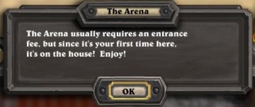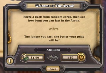 竞技场模式主要考验组牌能力——终于感觉前面对战模式没有白被虐啊——需要考虑比较法术曲线之类的进阶技巧。而且和事先猜想的不一样,竞技场里的比赛和玩家购买的牌库完全无关,免费玩家和付费玩家站在同一起跑线上。也就是说,这里不存在所谓美刀战士——这太让人感动了,请一定告诉我这不是演习。