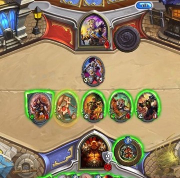 如果不是故意放水的话,AI在处理嘲讽类型生物的时候还是有点问题。比如有次在场上有小生物的情况下还用英雄去砍我5攻2血的嘲讽怪什么的……再比如,嗯……今天天气不错什么的……