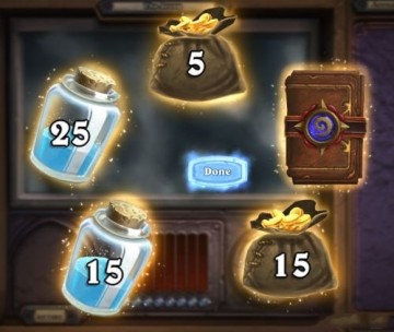 练习模式就是以解任务的形式和电脑打,完成一个解锁一个英雄,直至全职业制霸。出教学关玩家此刻手里只有基础牌(basic set),基础牌和卡牌的第一版一样,没有太强大的组合和太复杂的trick,以生物血拼为主,法术辅助。不可否认这些牌里有一部分很实用,但总体而言,连变成渣的价值都木有(因为不能用来拆奥法之尘)……不管怎么说,遵循“清场>补充手牌>铺场>打伤害”的大原则,只要会数数,通练习模式问题不成问题。
