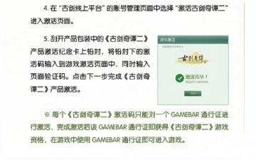 1. 登陆《古剑奇谭》系列官方网站注册GAMEBAR通行证并使用激活码激活,即可进行《古剑奇谭二》游戏。