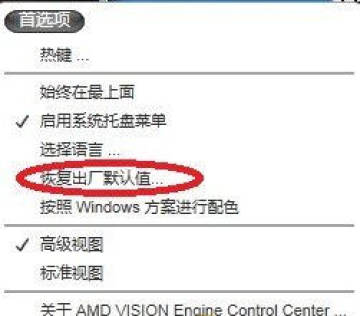 2. 在AMD控制中心“首选项”如(图3)中找到“恢复出厂设置”如(图4)所示,并点击按钮,弹出确认框如(图5)选择“是”,恢复显卡默认设置后再尝试进入游戏就可以了。