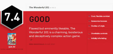 由神谷英树打造的WiiU独占游戏《神奇101》即将于8月24日上市发售,国外著名游戏评测媒体IGN自然不会放过此款佳作,给予其7.4分的不错评价,下面就来看看《神奇101》IGN的详细评测吧。