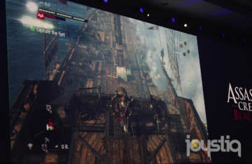 在近期举行的德国科隆游戏展上,育碧现场演示了PS4版本的《刺客信条4黑旗》,该作将作为PS4主机的首发游戏预定于11月同步上市。此外官方还曝光了PS4的新机能,那就是与PSV掌机的联动,玩家可以利用PSV来对PS4游戏进行遥控操作,而《刺客信条4黑旗》在PSV上的表现效果也不俗。