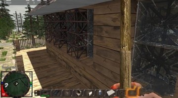 这里其实是游戏自带的木屋子。用拳头打会掉下来木块 跟MC一样 不过很费劲(估计是实木的)我拆了屋子的木头用铁架子支撑,结实又耐用