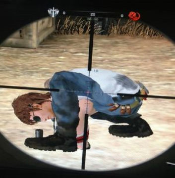 第二点:挡子弹。 作出低头蹲下的动作时,你的左腿膝盖会高于头部,并遮挡背部,而右腿是跪在地上的,这个时候你在把左边暴露给敌人的时候,敌人有三分之2的可能性只能击中你的大腿。并不能杀死你。而你可以岑他切枪时干掉他!