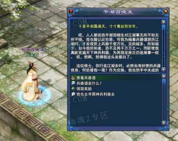 与平湖百晓生对话,可以打开兵器谱的界面。