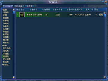 玩家可以在这里看到当前在兵器谱候选榜单中的装备、自己提交的装备、以及本服历届评选出的兵器谱结果。