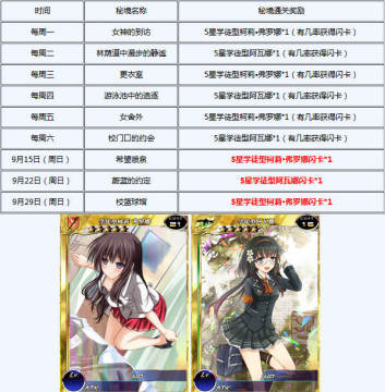 《百万亚瑟王》国服从9月15日至30日将开启全新的校园秘境,这其中分为日常秘境和活动秘境,玩家探索这些秘境将获得丰富奖励,更有5星闪卡免费附赠,这里就给大家分享下《百万亚瑟王》校园日常秘境和活动秘境的奖励道具,希望对各位亚瑟王能有所帮助。