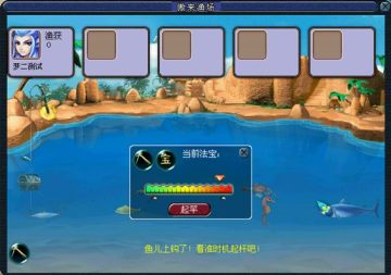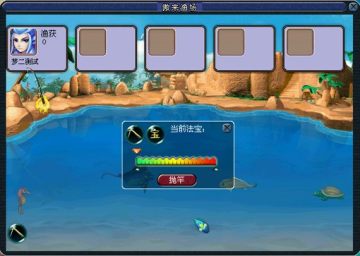 玩 家在钓鱼过程中,有时会遇到一些特殊的人,例如收购鱼虾的伙计,官府家的仆人,常在河边垂钓的老渔翁,胖胖的大嘴熊,还有出没不定的海盗,玩家只要认真细 心地和他们打交道,就有可能得到一些特殊的收获。当玩家获得钓鱼的专用法宝时(例如香油、虾饵等),可以点击界面左上角的法宝按钮选择使用。