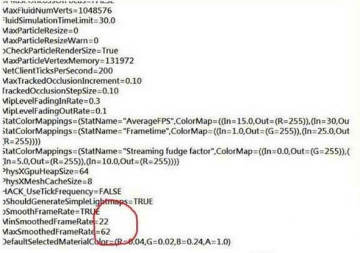 打开之后ctrl+F,查找maxsmoothedframerate,将后面的数字改成60,就可以将游戏最大帧数修改成60了!