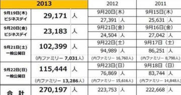 东京电玩展TGS 2013参展人数一览: