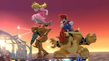 《任天堂全明星大乱斗》预计2014年与各位玩家见面,登陆WiiU和3DS双平台,游戏中将有多名任天堂旗下的经典游戏人物参战,近日官方放了几张本作实机截图,展示了新参战角色碧奇公主与其他角色之间的搞怪画面,例如深情脉脉地望着林克,脚踩萨姆斯等,当然马里奥大叔也踩了一回库巴。