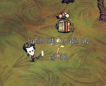 树长大之后,开启灭火器,上船用加农炮轰那40棵树,灭火器灭火,得到大量的木头、怪物肉、鸡蛋等