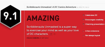 总评:就算在花费了10个小时左右完成游戏的12个关卡后,我觉得我只是揭开游戏丰富的创造性玩法面纱的一角,这让我有想继续玩下去的欲望。游戏用一个超级完善的角色数据库给DC漫画的历史一个崇高的赞美,同时前所未有的推动着你的创造力和想象力。对于年长的漫画粉丝来说,游戏可能有一些孩子气,但是《涂鸦冒险家 DC漫画大冒险》是一个锻炼脑力和DC世界英雄角色知识的完美方法。