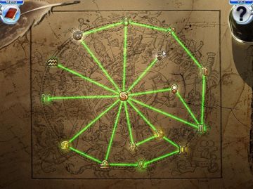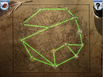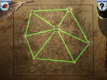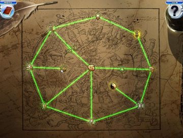 3-2、又是拉线小游戏,每次都有朋友不会玩这个,不过这次比较简单,游戏的规则就是任两条线都不交叉,就是绿色才可以。有个技巧就是因为和符咒有关系,一定是以II为中心的六角行,先把II放在中间,再往外面拉其他的线。完成图如下: