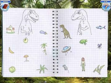 4-4、选出恐龙爱吃的和不爱吃的东西。左边是爱吃的,右边是不爱吃的,没想到霸王龙还吃素,特别是还喜欢吃蛋糕,哈~完成后别忘了点一下右边,把它不爱吃的都丢掉。完成图如下:图4.5
