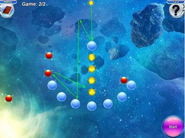 12-2、还是上面的小游戏,但是好象更复杂点了。第一关我只放了两个红球,左边另两个红球我没有用,消除上面的大黄球的路线已经标明,第二个也是乱撞碰到的,嘿嘿。图12.3