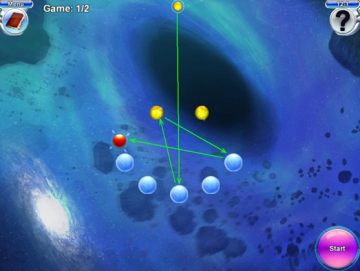 12-1、开始就是小游戏。主要规则就是:按右下角的Start之后,在最上面的小黄球会落下,通过反弹,最终目标是碰撞中间两个大黄球,使其消除。红色的球可以任意摆放,起到的作用就是限定小黄球的运动轨迹,使它碰撞所有的大黄球。技巧是,先不要放红球,看看小黄球本来的运动轨迹,会在哪一步弹出去,再在那个位置上放红球挡住它。一共有两关,红色球摆放的位置如下图,每关的图上箭头表示小黄球一开始的运动轨迹,有的地方需要反弹N次才能完成游戏,我就没再做更多的箭头了。我的方法仅供参考,应该还有其他的方法,大家可以多多实验~