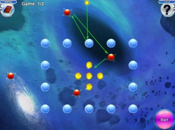 16-1、在等待神秘催眠力量出现的时候,机器人要求和你玩游戏。游戏像跳棋一样,但是只能隔一个跳,跳一步之后被跳的棋子就消除掉了,右边有你需要消除的数量。注意可以斜着跳,点一个棋子后有黄色的圆圈就是可以跳到的位置,这个游戏就是要注意不要留单独的一个棋子在角落了,不然就成了死棋了。