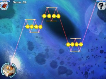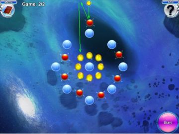 第二关复杂点,左边按照图上放两个红球之后,就可以碰撞中间的上面三个大黄球了,右边再放一个红球作用是碰撞最后下面那个大黄球。如果不成功可以多试几次,我后来又玩过一遍,其实只要左边第一个红球放好了,几乎可以一次就过关了。图12.4
