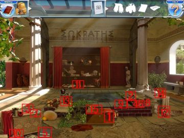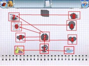 6-1、苏格拉底大叔没有穿衣服哦…嘿嘿,帮他找到衣服。因为这一关是根据单词找东西的,所以在图上我用数字表示出顺序。在图一中有13个物品,2处得到物品后,4处物品在2处后面。13处是幅画,打开后找到画最右下角的绵羊,绵羊在一开始就可以先得到。在这个图上找齐13个以后点最左边的门口去图二。图二中前9处得到物品后,才能看到第10个物品钥匙,拿钥匙回图一,打开A处箱子,得到衣服。图一: