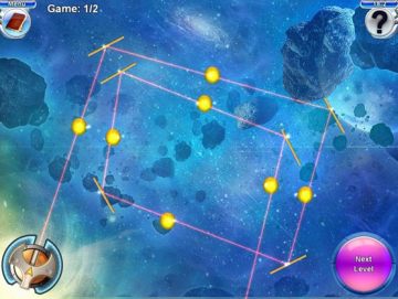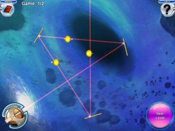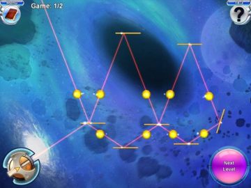 18-1、先玩游戏~挪动镜子,就是黄色的条,反射光照到所有的红球。注意玩这个游戏一定要从光的发射点开始摆放镜子。完成图如下: