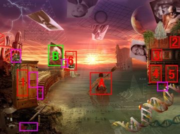 15-1、搜索不属于这个时代,通过时间风暴到这里的东西,其实就是找东西。图一中有15处,其中6处是支钢笔,在4处下面;8处是棋子在4处后面;10处是开瓶器,比较小不容易看到;15处是锤子,在箱子里。找到这15处之后再去下个图。图一: