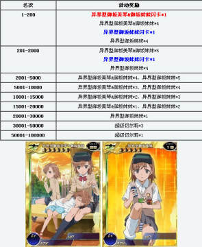《百万亚瑟王》小御坂妹妹排位赛活动奖励详解