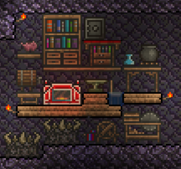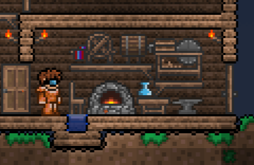 如果要搭建一间几乎能制作任何东西的工作室,先放置一座熔炉(如果可能的话,地狱熔炉/精金熔炉更好).
