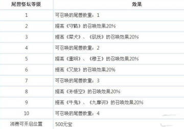 我是火影 尾兽能力介绍 来源: 飞翔小编 2013/10/9 11:12:35 浏览量:659 在《我是火影》中尾兽是非常强大的生物,每一个尾兽都有独特的能力。下面给大家简单讲解尾兽能力特点,希望对大家有所帮助。《我是火影》游戏中共有9只尾兽,每一只尾兽拥有的能力不同,玩家只有将尾兽在尾兽祭坛中召唤出来才能开启他的效果,没有在尾兽祭坛召唤的尾兽,则无法为玩家提供战力提升效果。尾兽祭坛等级效果:尾兽的详细能力说明: