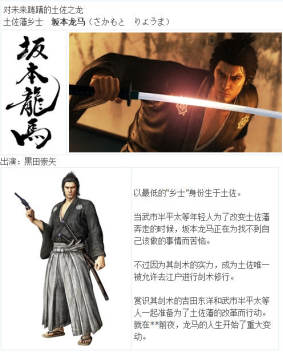SEGA幕末题材游戏《如龙 维新》官方网站近日更新,曝光了游戏里土佐藩重要角色的背景介绍,其中就包括坂本龙马,吉田东洋,中冈慎太郎,武市半平太和冈田以蔵,下面一起来看看吧。
