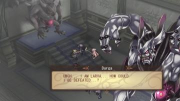 攻入要塞,和神一般的BOSS杜尔迦对决!优先清除周围的小怪,BOSS具有惊人的物攻,且是周边区域群攻技能,因此千万不要将队员一起堆在它面前,否则极容易群死群伤。最佳策略是让“傀儡里昂”一人上前顶住BOSS(里昂具有“PARRY”被动技能,血量少于四分之一时防御除一击必杀外的一切物攻~),其他人四散在外围,储备一定量SP后,联动攻击一回合干掉它!