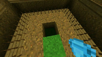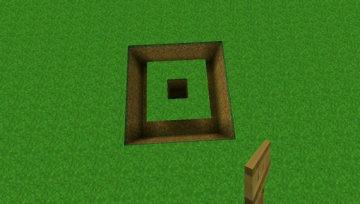 1:挖一个5x5的方框,深两格。并将最中心也向下挖两格